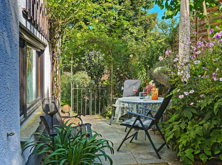 oder entspannen Sie bei schönem Wetter in unserem Garten bei einem Gläschen Wein.